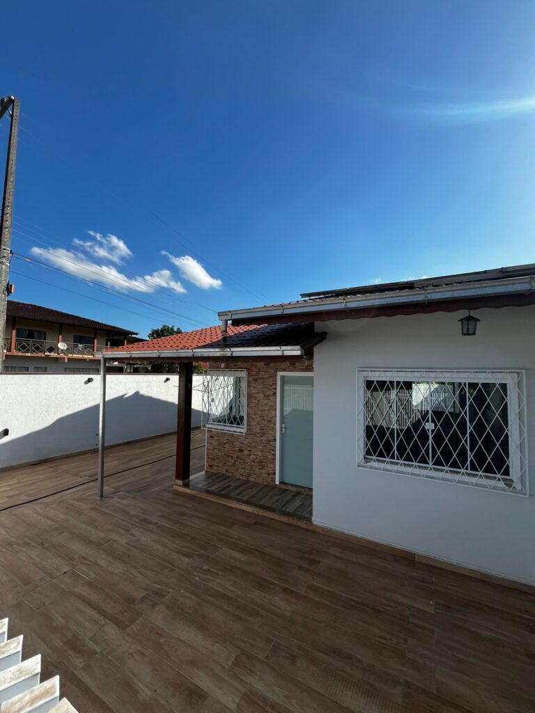 Casa residencial, localizada no bairro Schroeder I, próximo ao trevo de acesso a cidade de Schroeder. Área construída de aproximadamente 116,84m² (averbada) e mais uma área de festas com 49,38 m²(não averbado). Terreno com área de 1.882,10 m². 02 dormitórios, 01 suíte 1 garagem garagem coberta e mais uma pátio para estacionamento. 01 banheiro, lavanderia, […]